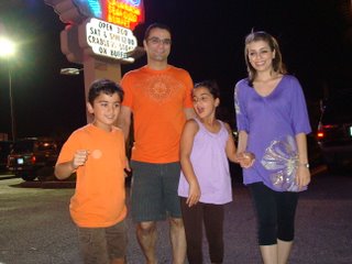 After we feast on seafood at a restaurant called Calabash we were walking to our car and I thought we should take a picture and act natural... so we did. It came out very good with me arguing with Ardeshir because I didn't think he was in a good place to stand so I was telling him to go a little bit behind Baba and that's when the camera clicked and Poroshat joon is smiling and walking and Baba didn't really know what we were doing so he was just smiling. And now we are looking at the picture and we think it is very great!!!!