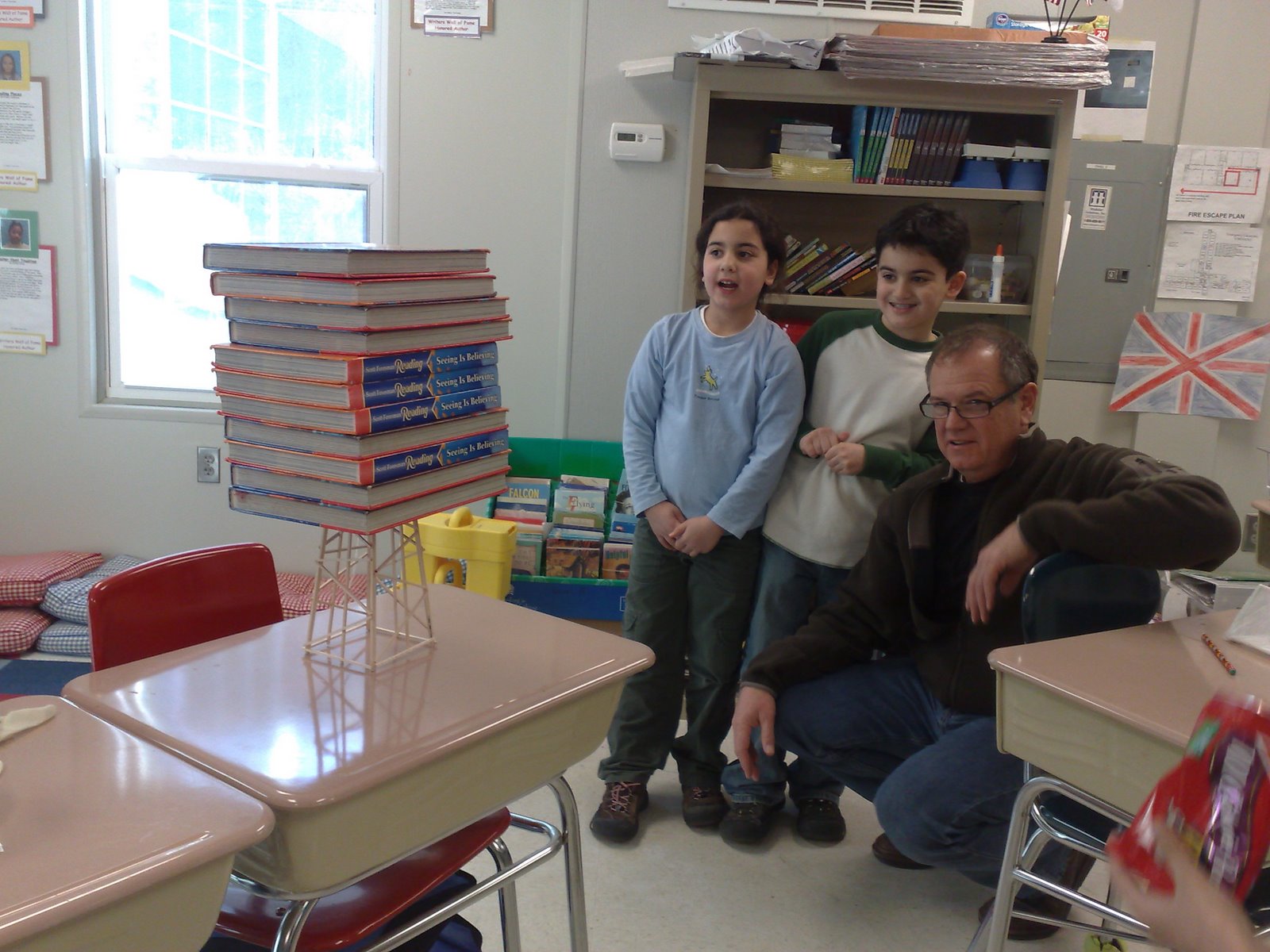 The picture on the right was a picture of me showing our coach, my brother,Ardeshir, and another OM member, Karl the structure.The structure held 10 books. We were very impressed with Karl for building the structure. Also I was holding another book in my hand that I was about to put it on the structure.Our coach was like 'your going to add another book.' He was unsure but as you can see on the picture at the right we added another book and it was still standing up so it was very strong.Our record at the end of putting all of those books on were 16 books on the same structure. We were very impressed and when it finally did brake we were happy to save a few parts for memory and pleasure.